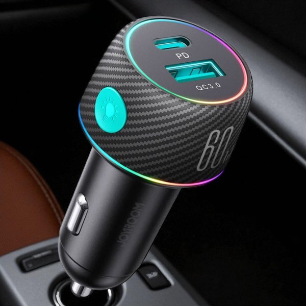 Öflugt 60W hraðhleðslutengi sem tengist sígarettukveikjaranum í bílnum. Tækið er með USB-A og USB-C tengi sem gerir þér kleift að hlaða tvö tæki samtímis. Hraðhleðslutengið styður helstu hraðhleðslusnið, þar á meðal PD3.0, QC3.0, PPS, Samsung AFC og Huawei SCP, sem tryggir hraða og örugga hleðslu.