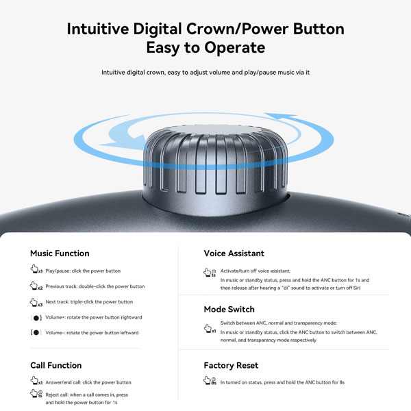 Öflug þráðlaus heyrnartól með hljóðnema, Bluetooth 5,4 (nýjasta útgáfan), allt að 120 klst spilun og virka ANC hljóðeinangrun (noice cancelling). Heyrnartólin eru með memory foam púða fyrir aukin þægingi. Fullkomin ANC þráðlaus heyrnartól fyrir langa hlustun, tölvuleiki, tónlist og þegar horft er á sjónvarp.