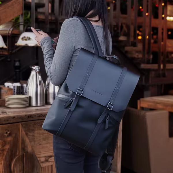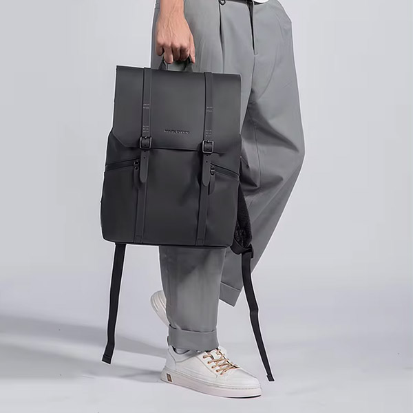 Muke II frá Mark Ryden er með stílhreina hönnun sem vekur mikla athygli. Taskan er úr Oxford efni og PU með góða vatnsheldni. Hún lokar innra rými með rennilás og smellum á hliðum en svo leggst toppurinn yfir og smellist að framan með segulsmellum. Að framan eru tveir renndir rúmgóðir vasar og einn stór með frönskum rennilás. Innra rými töskunnar samanstendur af hólfi fyrir allt að 15,6” fartölvur og hinum megin er renndur vasi ásamt tveimur opnum. Aftan á tösku við bak er falinn renndur vasi með miklu geymslurými. Glæsileg taska fyrir fólk á ferðinni sem tekið er eftir.